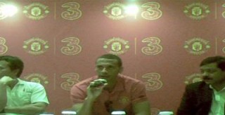 Bek Manchester United, Rio Ferdinand dalam Jumpa Pers di sela-sela peresmian Manchester United Soccer School di Jakarta, Rabu (29/6/2011).