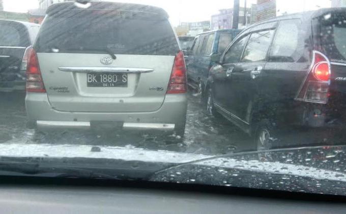 Hujan lebat yang mengguyur Kota Medan, Minggu (2/11/2014) menyebabkan sejumlah ruas jalan digenangi air. Seperti terlihat di persimpangan Jl Sunggal-Gatot Subroto, air menggenangi jalan dan menyebabkan kemacetan panjang.