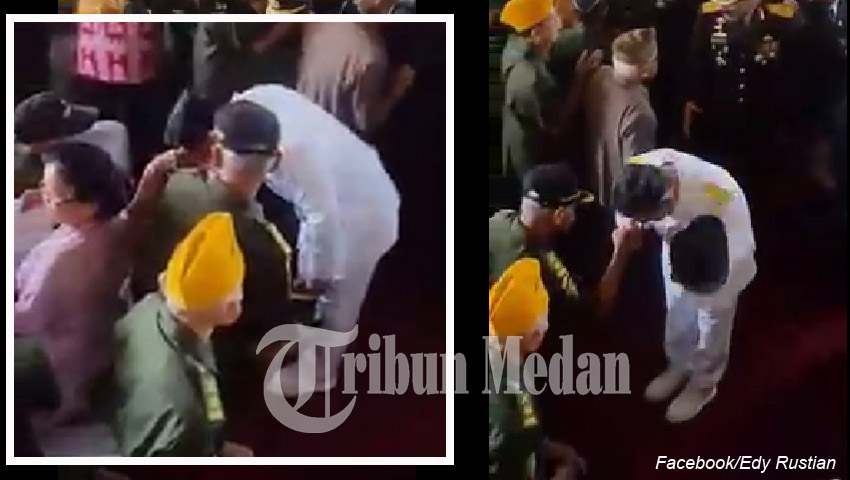 Seperti yang diperlihatkan dalam video ini terlihat sang Gubernur awalnya menyalami para muspida yang hadir, namun saat kemudian menyalami veteran yang terlihat memakai baju seragam dia sambil membungkuk lalu mencium tangan mereka.
