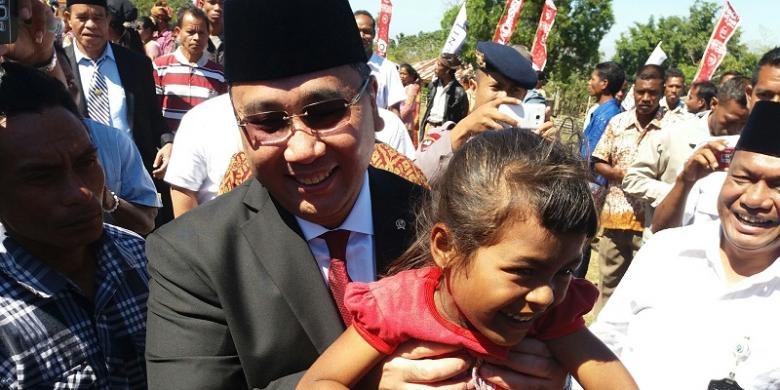 TRIBUN-MEDAN.com, JAKARTA - Menteri Desa, Pembangunan Daerah Tertinggal dan Transmigrasi (Mendes PDTT) Eko Sandjojo merayakan Hari Raya Idul Adha di desa Kaduagung Barat di kecamatan Cibadak, Kabupaten Lebak, Banten, Senin (12/9/2016).