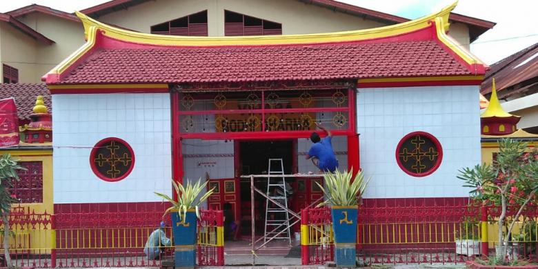 Menjelang Imlek, pengurus di Kelenteng Vihara Setia Buddha Binjai melakukan bersih-bersih kelenteng, Kamis (26/1/2017).