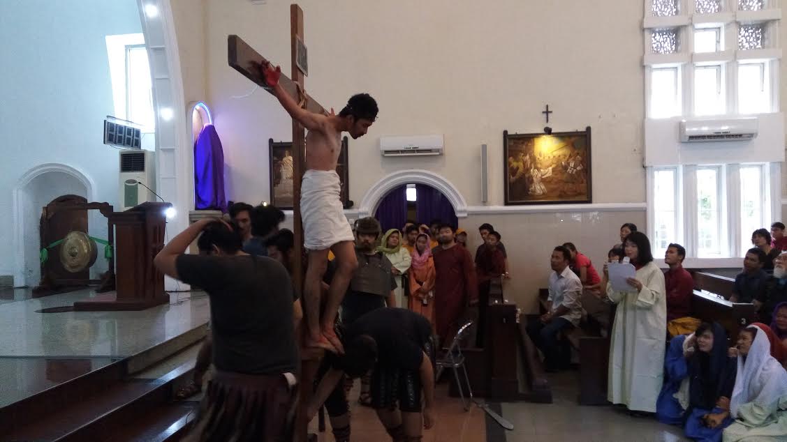 Saat Yesus disalib, para jemaat yang ikut dalam prosesi ini menangis sesenggukan.