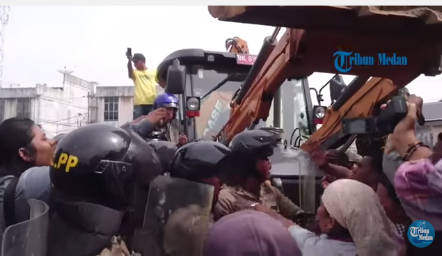 Pantauan Tribun-medan.com tidak lama berselang setelah Kasatpol PP Sofyan memberikan himbauan kepada para pedagang, mobil eskavator mulai menertibkan bangunan kios satu persatu dan meratakan dengan tanah.