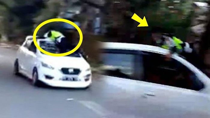 Korban sempat memegang kap mobil, tetapi dilaporkan oknum TNImengemudikan mobilnya zig-zag.