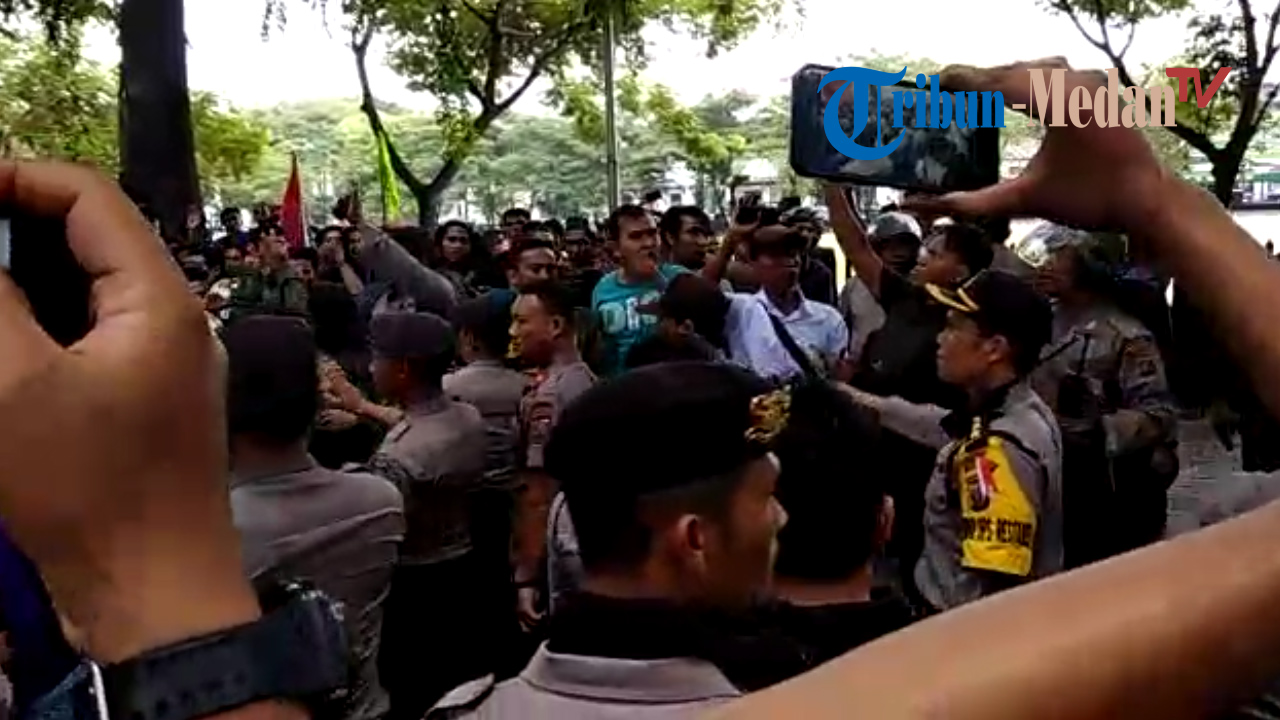 "Baik rekan-rekan, jika tidak tenang, terpaksa kami melakukan tindakan kepolisian," ujar Kabag ops Polrestabes Medan AKBP I Gede Nakti.