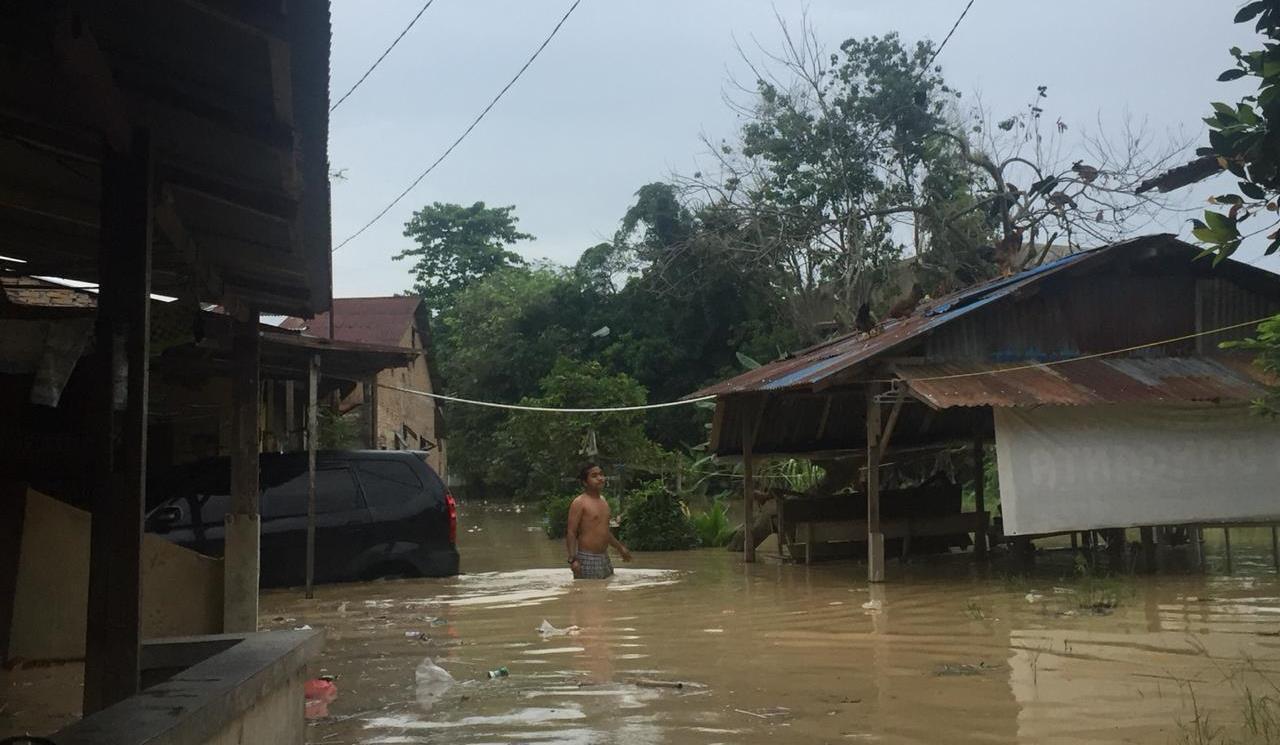 Hujan deras yang terjadi sejak Jumat (14/2/2020) malam, telah membuat Sungai Babura meluap dan merendam ratusan rumah.