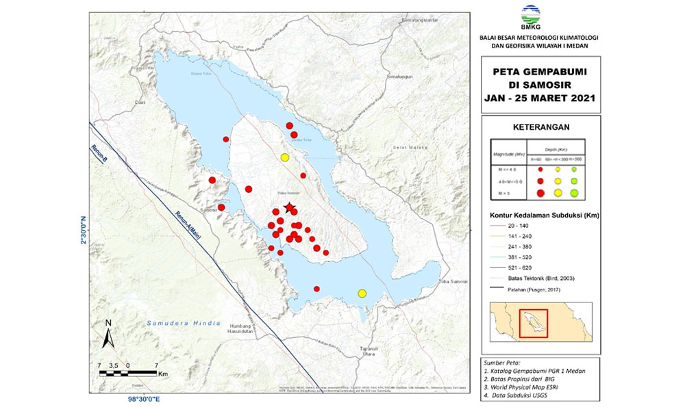 Sejak 1 Januari 2021 hingga 25 Maret 2021 saja Samosir sudah diguncang 29 kali gempabumi dengan kekuatan bervariasi antara 1.6 - 3.9 SR.