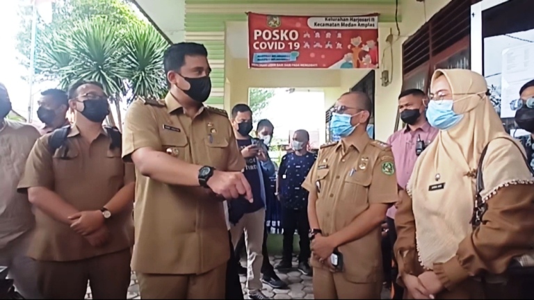 TRIBUN-MEDAN.com, MEDAN - Wali Kota Medan Bobby Nasution melakukan inspeksi mendadak (sidak) ke Kantor Lurah Harjosari II, Jalan Dwikora, Kecamatan Medan Amplas, Selasa (18/5/2021).