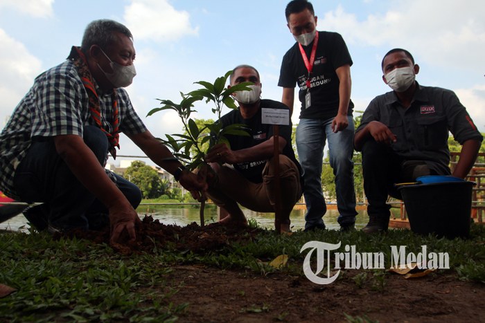 TRIBUN-MEDAN.COM - Kadis Kebersihan dan Pertamanan Kota Medan M Husni bersama rombongan menyisir danau untuk mencari lokasi penanaman pohon bertepatan Hari Lingkungan Hidup Sedunia di Taman Cadika Pramuka, Medan, Sabtu (5/6/2021). Memperingati Hari Lingkungan Hidup Sedunia PFI Medan dan Pemerintah Kota Medan dan pihak terkait menyelenggarakan kegiatan tanam pohon.