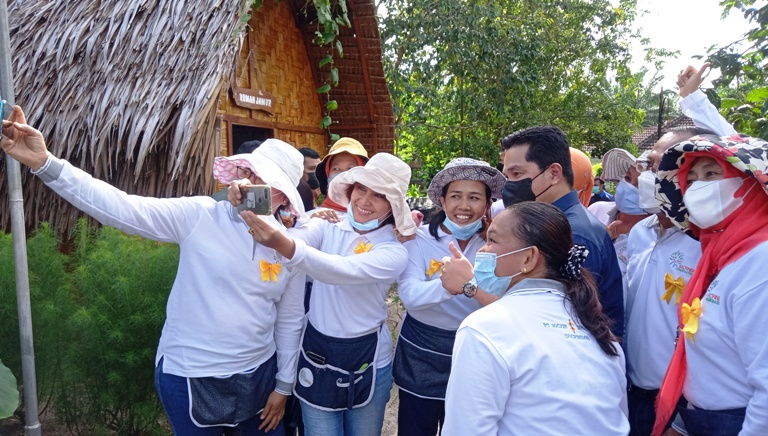 Menteri Erick Thohir Dapat Jamu Penambah Stamina dari Emak-emak di Serdangbedagai