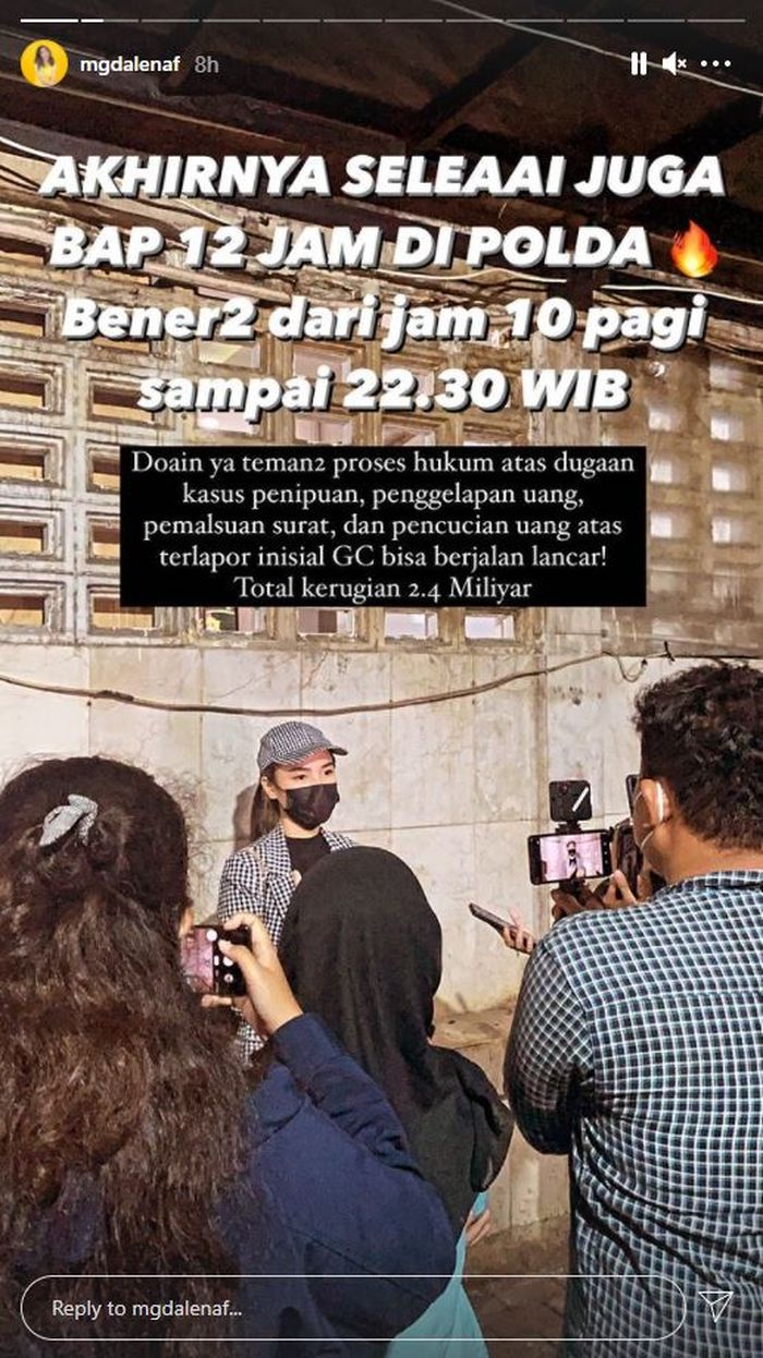 "total kerugian 2,4 Miliar," tulis Magdalena di Instagram Story-nya, dikutip Rabu (1/9/2021).