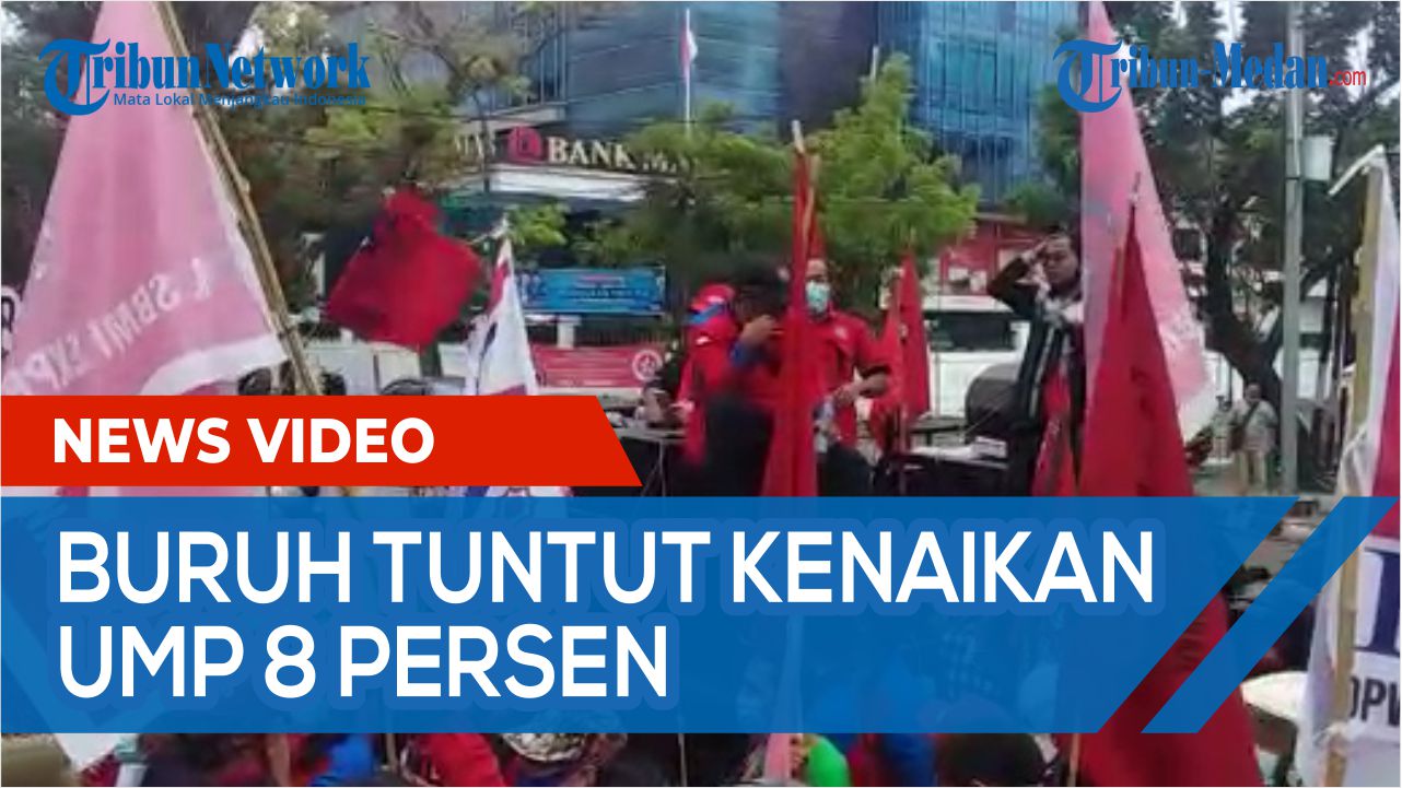 Di akhir tuntuntannya Serikat Pekerja/Buruh Sumut mendesak kenaikan UMP Sumut sebesar 8 persen.