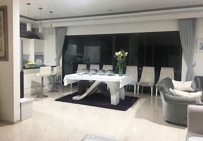 Mengikuti warna dapur, Andi memilih sebuah meja makan besar nan kokoh berwarna putih.