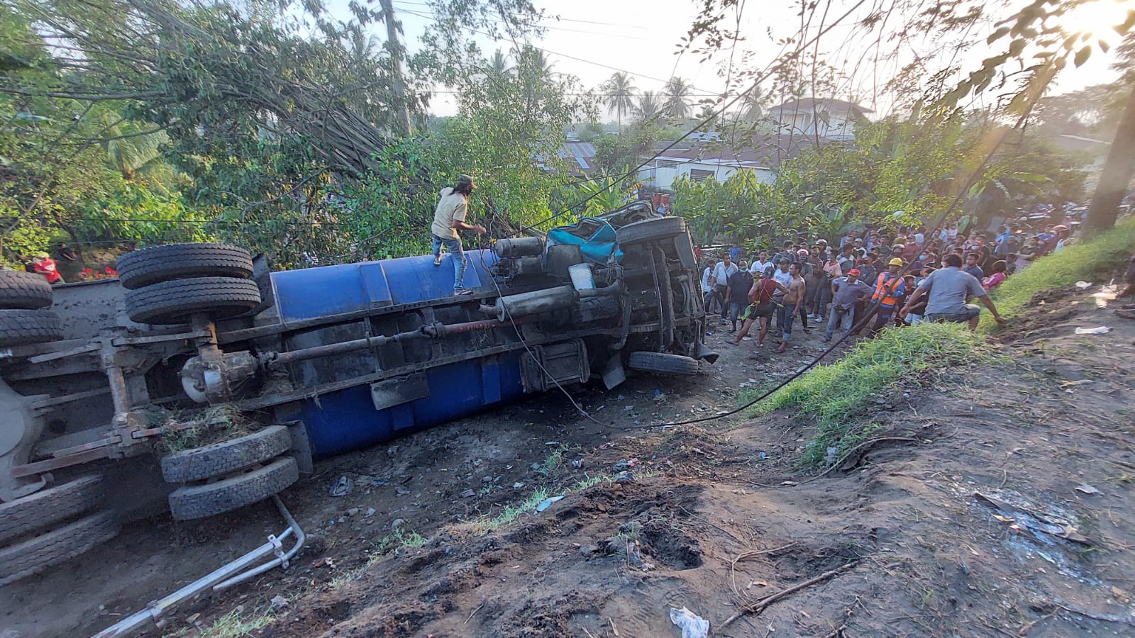 Truk Tangki CPO Terbalik di Perbaungan, Sopir Tewas di Tempat, Warga Berebut Minyak