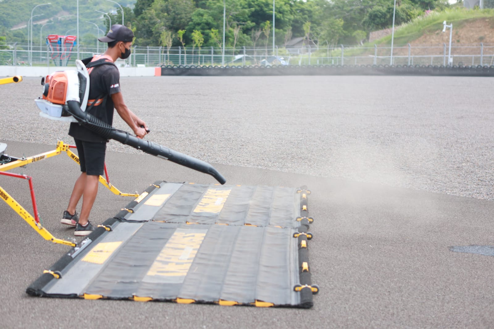 Andhi menjelaskan, setelah diangkatnya Bendera Merah, pihak penyelenggara langsung memerintahkan kendaraan pembersih track “Track Jet Truck” yang memiliki penyemprot air bertekanan tinggi dilengkapi rotating brush untuk memasuki lintasan dan membersihkan area-area tertentu, dibantu dengan crew maintenance.