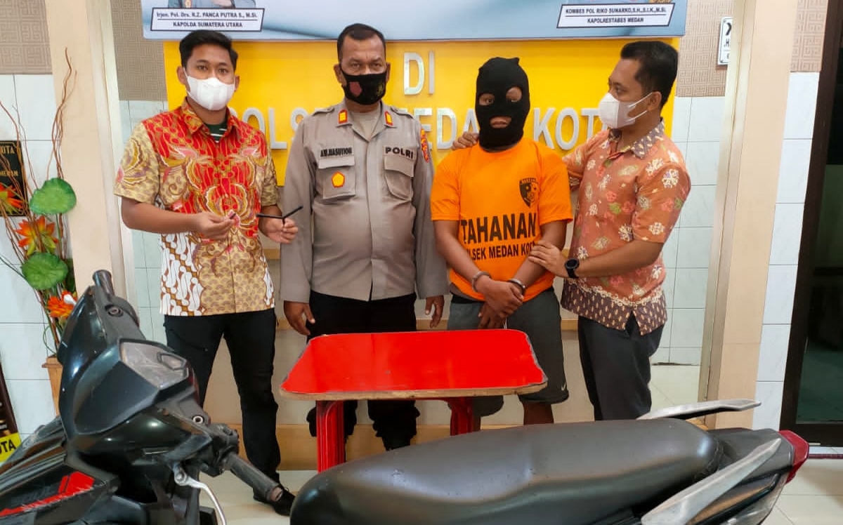 Petugas Polsek Medan Kota bekuk maling motor yang tengah beraksi di Pasar Simpang Limun