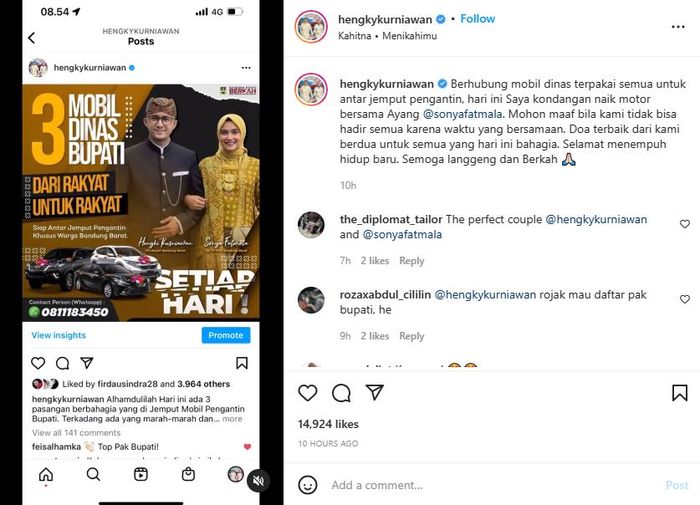 Saking baiknya dan mengabdinya artis ini kepada rakyatnya, ia juga rela mobil dinasnya dipakai oleh warga yang menikah.