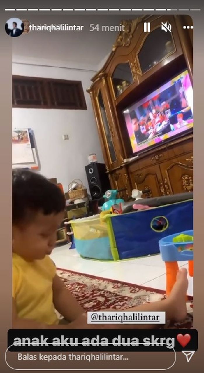 "Anak aku ada dua sekarang," tulis Thariq Halilintar di akun stories instagram miliknya.