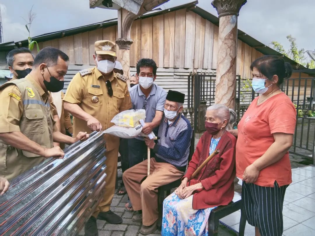 Bupati Dairi, Eddy Keleng Ate Berutu mendatangi pasangan lansia yang rumahnya terkena bencana angin kencang