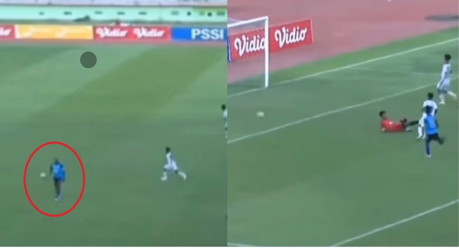 Dalam video yang beredar di media sosial, pemain naturalisasi asal Kamerun itu terlihat sengaja membiarkan bola umpan dari rekan setimnya.