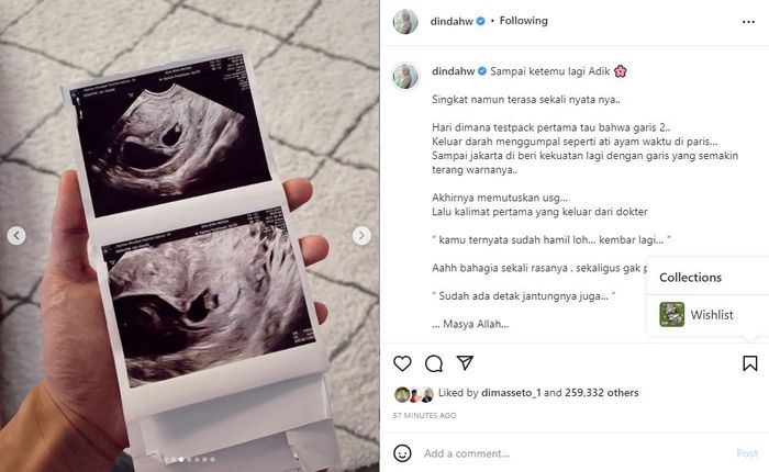 Tak berselang lama, Dinda Hauw pun membagikan kisah kehamilannya hingga peristiwa keguguran yang dialaminya lewat postingan di akun Instagram miliknya @dindahw.