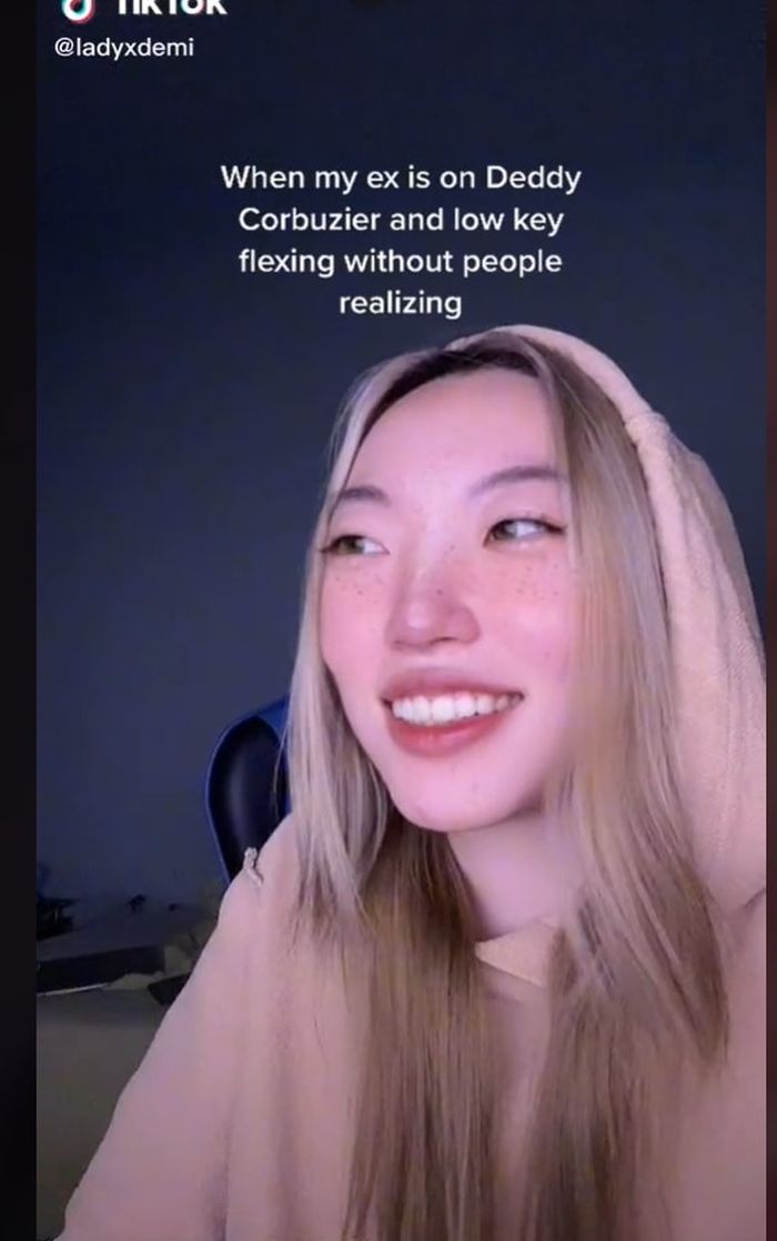 "When my ex is on Deddy Corbuzier and low key flexing without people realizing (Ketika mantan ku di Deddy Corbuzier dan melakukan "low key flexing" tanpa orang menyadari)" tulisnya dalam video tersebut.