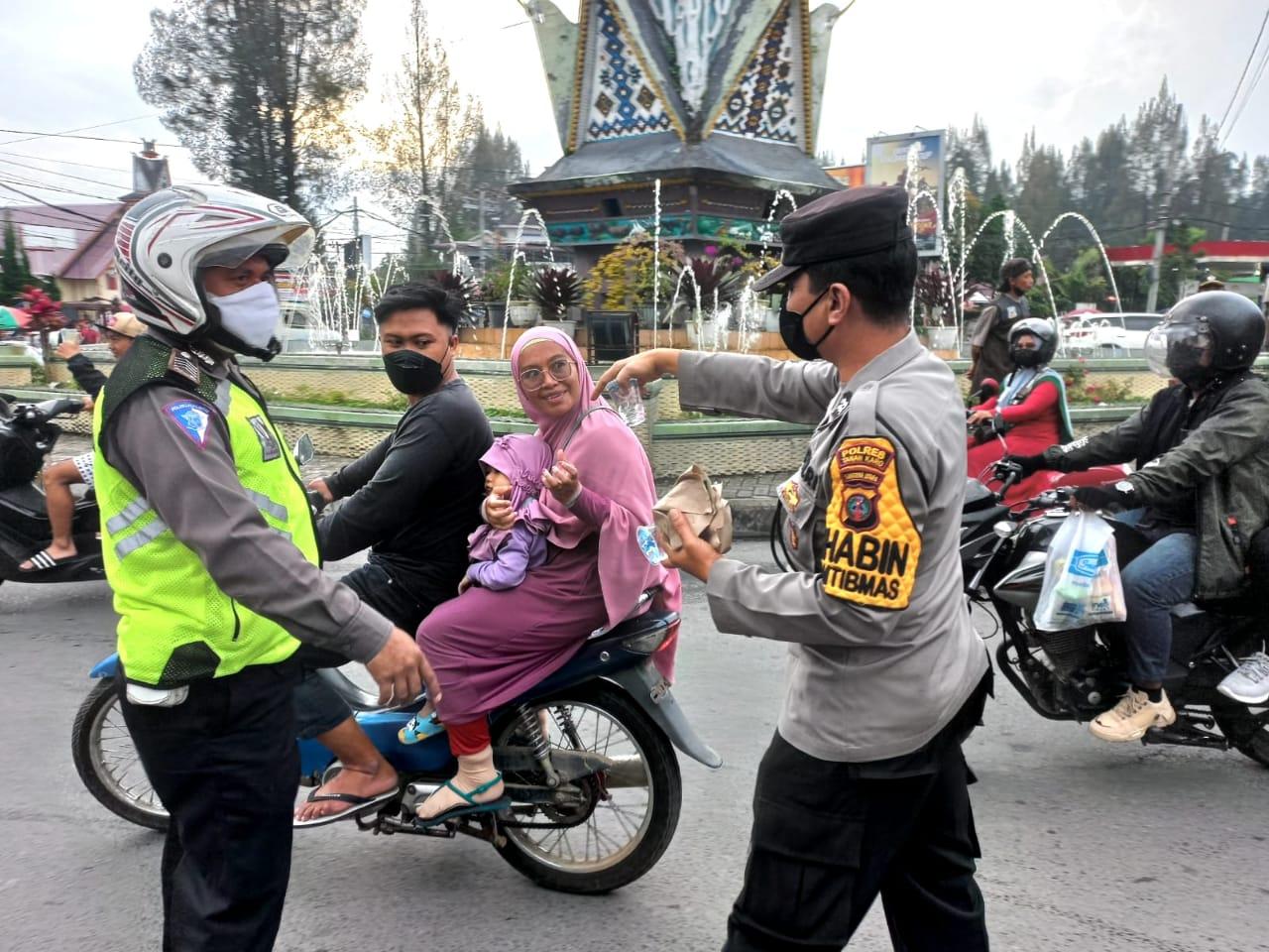 Polres Tanah Karo Bagi Takjil di Tugu Juang Berastagi