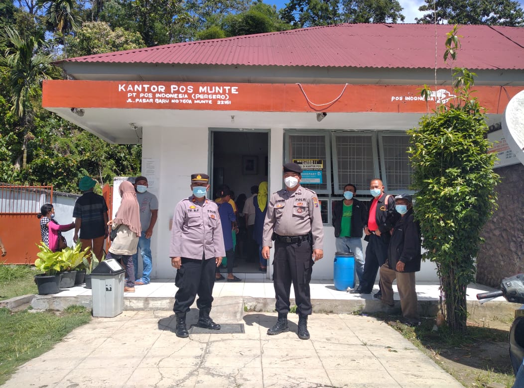 Polsek Munthe melaksanakan pengamanan penyaluran Dana Bantuan Program Sembko Tahun 2022, di Kantor Pos Munthe Kecamatan Munthe Kabupaten Karo, Kamis