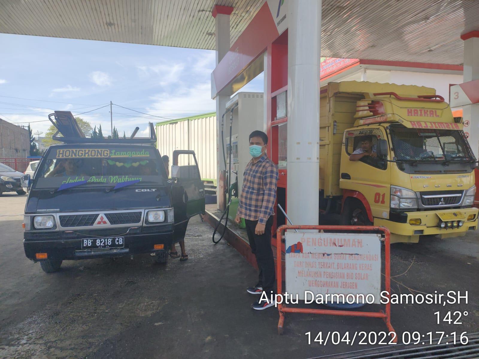 Aiptu Darmono Samosir bersama dengan Manajer SPBU yang berada di wilkum Polres Samosir langsung melakukan monitoring.