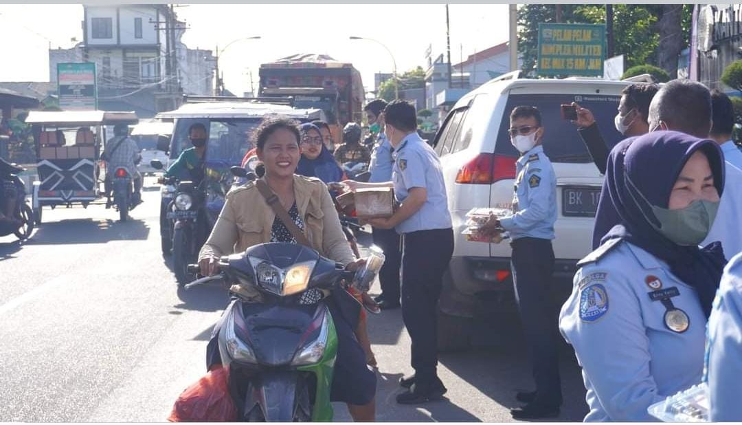 Pembagian takjil dilaksanakan di depan Kantor Imigrasi Sibolga terhadap warga yang sedang melintas.