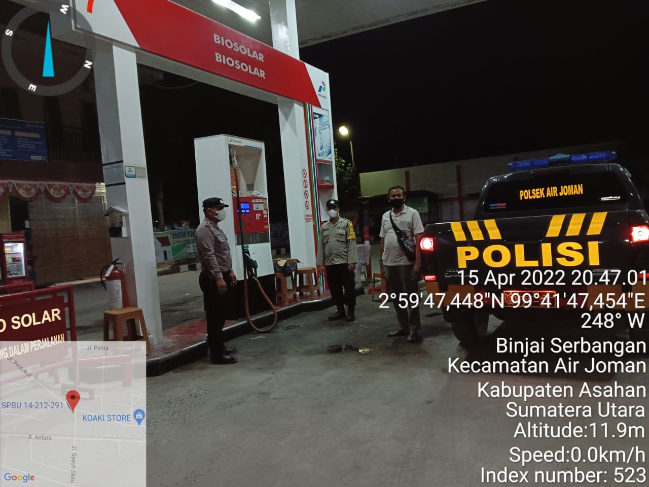 Dalam mengantisipasi kelangkaan Bahan Bakar Minyak (BBM) Solar, Personel Polsek Air Joman Polres Asahan melakukan monitoring di SPBU wilayah hukumnya
