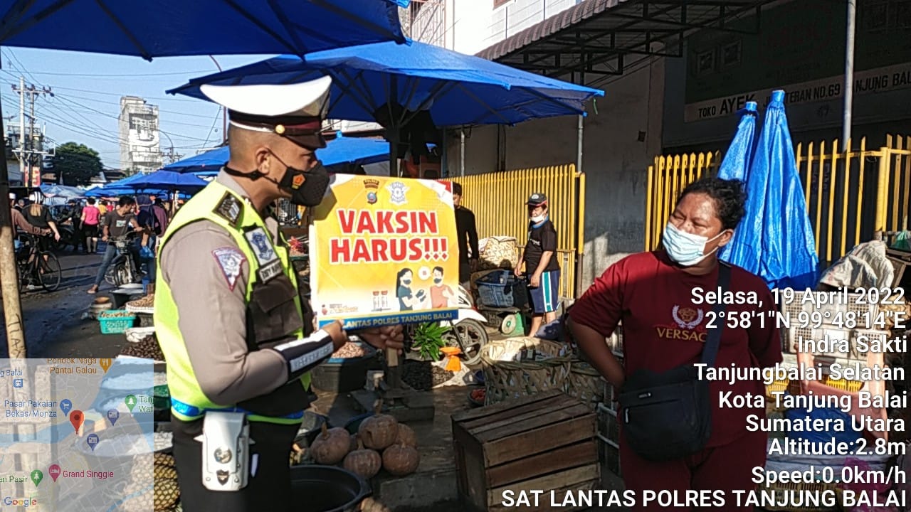 TRIBUN-MEDAN.COM, TANJUNGBALAI -Personil Satuan Lalu Lintas Polres Tanjungbalai melaksanakan Public Speaking himbauan agar masyarakat melaksanakan vaksindei menambah imun tubuh dalam pengendalian virus Corona.