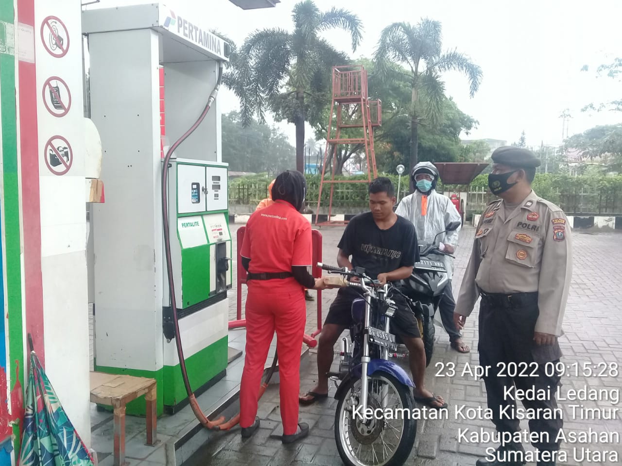 , Personel Samapta Polres Asahan rutin melakukan monitoring ke sejumlah Stasiun Pengisian Bahan Bakar Umum (SPBU), Sabtu (23/4/2022).