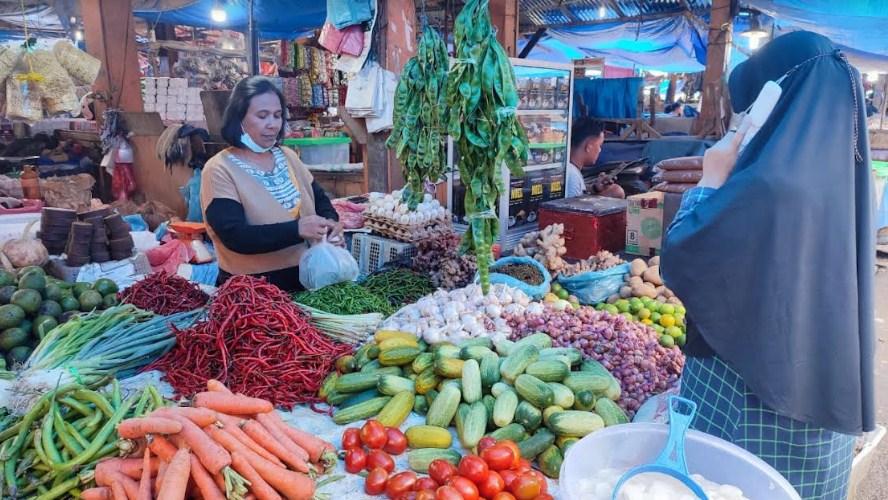 Jelang Hari Raya Idul Fitri, sejumlah harga kebutuhan pokok di Pusat Pasar Sidikalang masih normal, Senin (25/4/2022).
