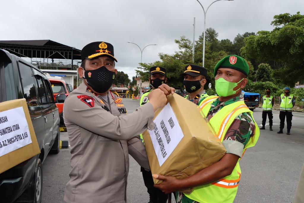 Di sana, Kapolda Sumut bertemu dengan petugas pos yang terdiri dari TNI, Polri, Satpol PP, Dinas Kesehatan, dan Perhubungan. Terlihat pria dengan bintang dua dipundaknya ini berterimakasih atas pelaksanaan tugas dengan baik.
