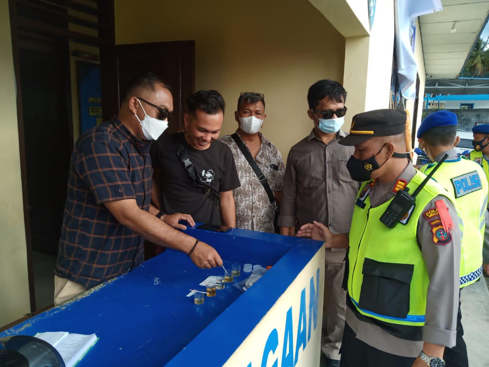 Kasat Narkoba Polres Simalungun AKP Adi Haryono melakukan test urine kepada Nakhoda dan Anak Buah Kapal (ABK) di Pelabuhan Kapal Penumpang Tiga Raja.