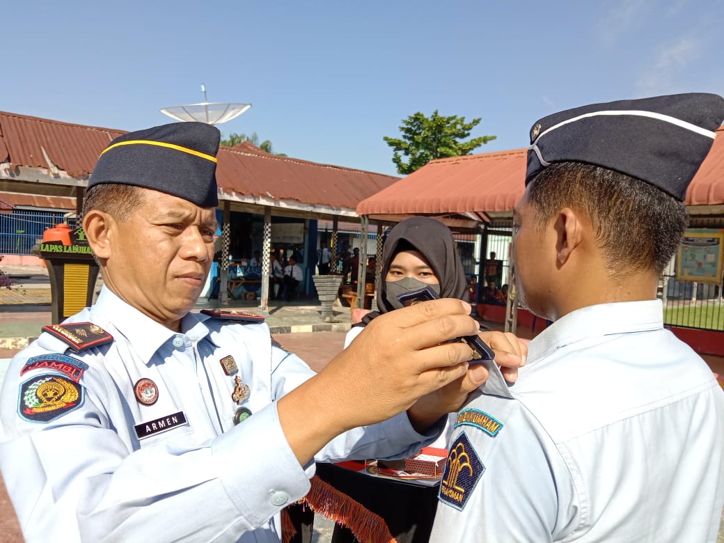 Kepala Lembaga Pemasyarakatan (Kalapas) Labuhan Bilik, Armen Zain, serahkan Surat Keputusan (SK) dan sematkan tanda kenaikan pangkat pada 25 pegawai