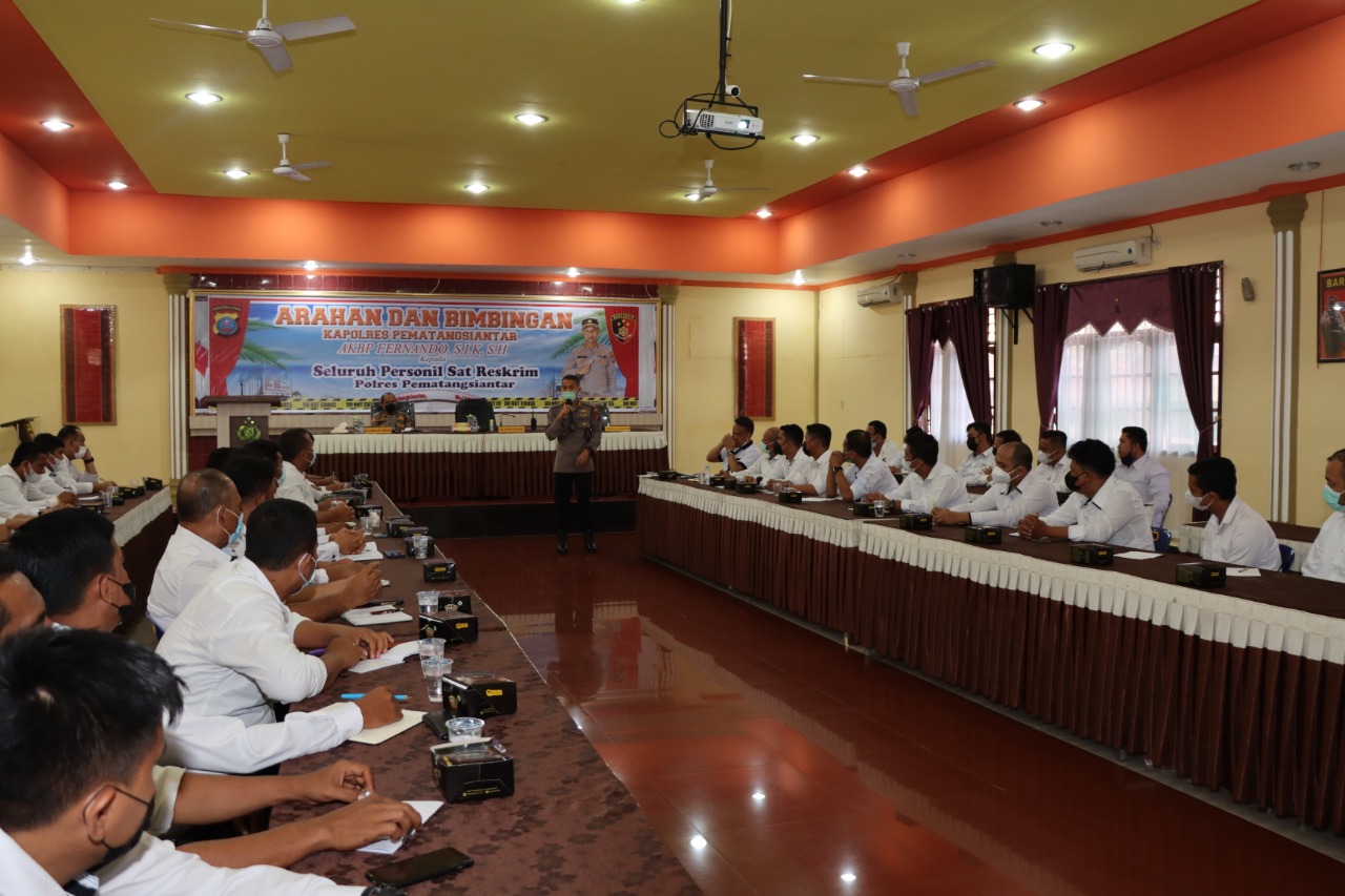 Kapolres Pematangsiantar AKBP Fernando SH, SIK beri arahan dan bimbingan kepada personil reskrim di Aula Widya Satya Brata Polres Pematangsiantar.