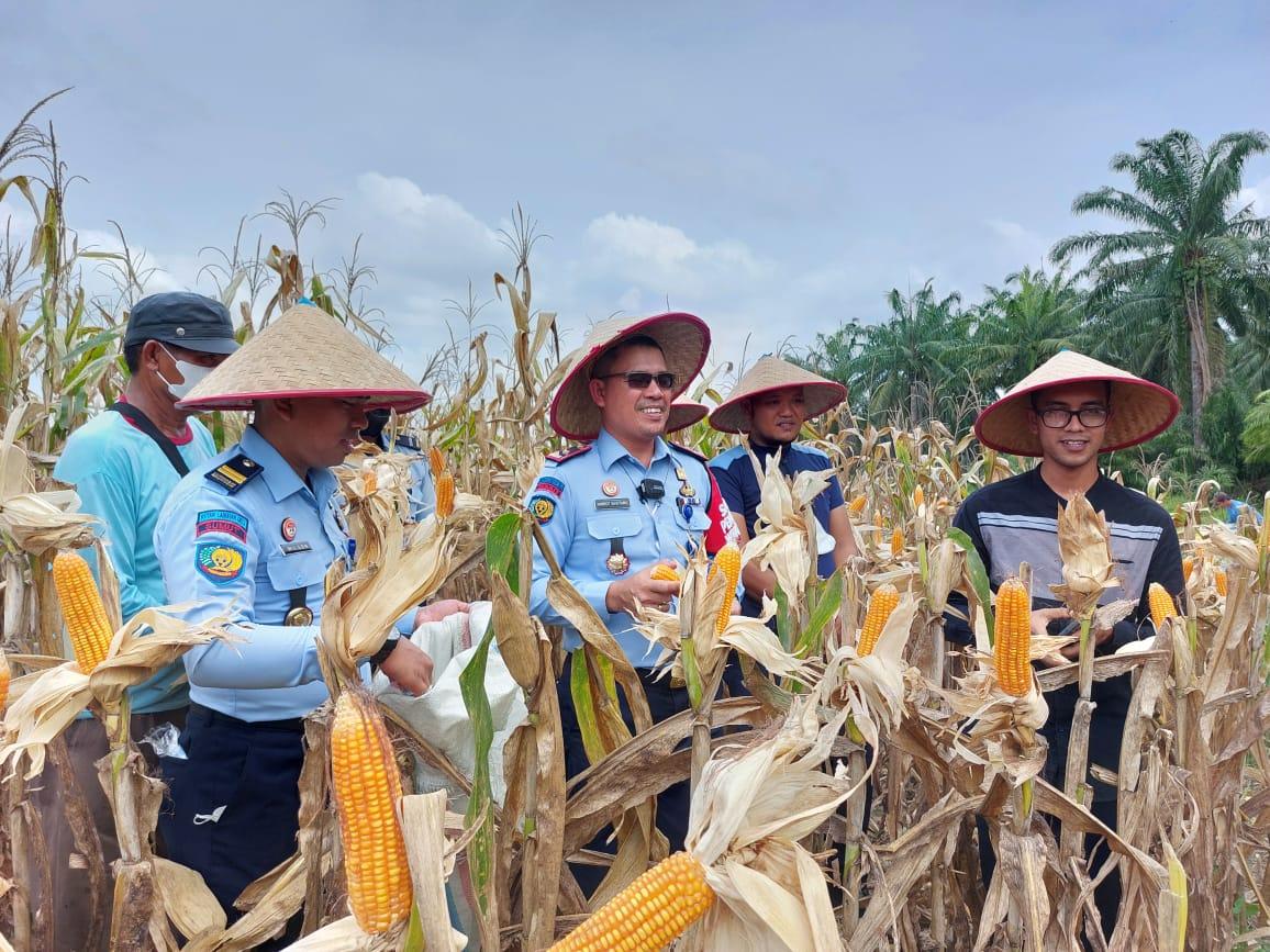 Rutan Kelas I Labuhan Deli Kanwil Kemenkumham Sumut laksanakan panen raya Jagung seluas tiga hektar yang berlokasi di desa Manunggal pasar VII Marelan