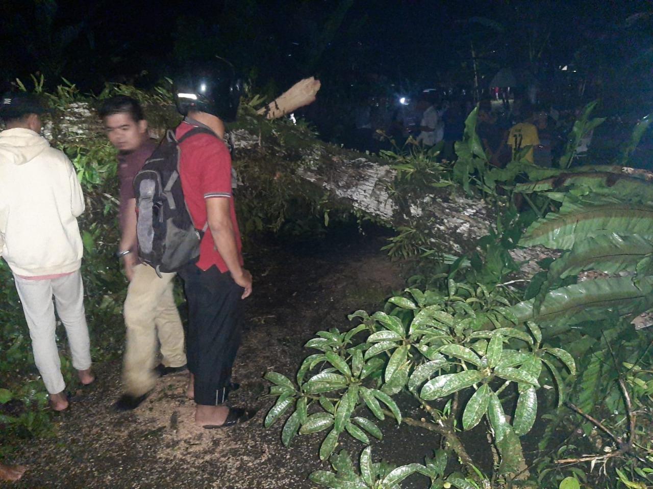 "Jadi kita bantu evakuasi pohon tumbang dengan menggunakan senso milik warga untuk memotong pohon sehingga bisa dilalui kendaraan," katanya.