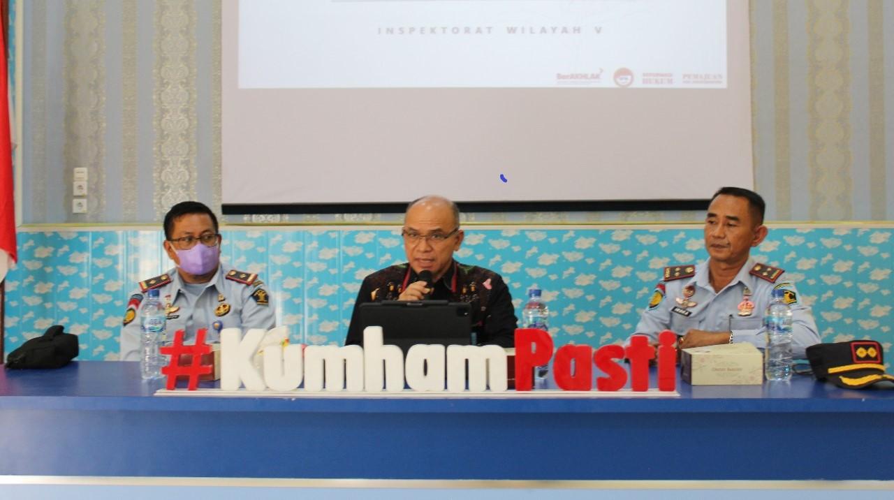 Bertempat Aula Lapas Padangsidimpuan, Kalapas Padangsidimpuan, Indra Kesuma, A.Md.IP, SH, MH beserta jajaran dan Kepala UPT Pemasyarakatan Se-Tabagsel, Ikuti Kegiatan Sosialisasi Disiplin Pegawai Negeri Sipil bersama Inspektorat Wilayah V Kementerian Hukum dan HAM, Senin (23/05/22).