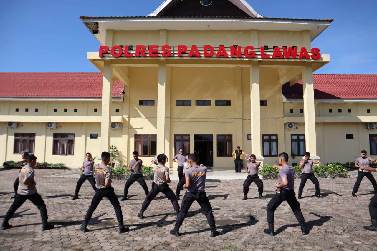 Pada kegiatan latihan beladiri Polri hari ini diikuti oleh semua anggota Polres Padanglawas dan jajaran yang dipimpin AKP Rahmad Saleh Nainggolan.