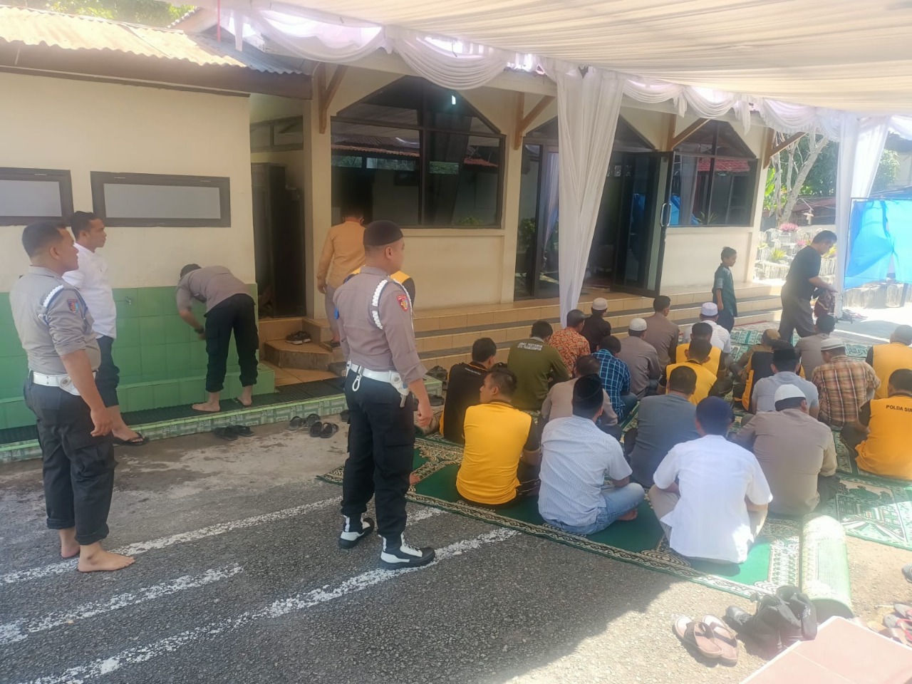 Personil Polres Padangsidimpuan dengan melaksanakan shalat jum’at berjamaah di Musollah Ar-Rahman Polres Padangsidimpuan, Jumat (27/5/2022).