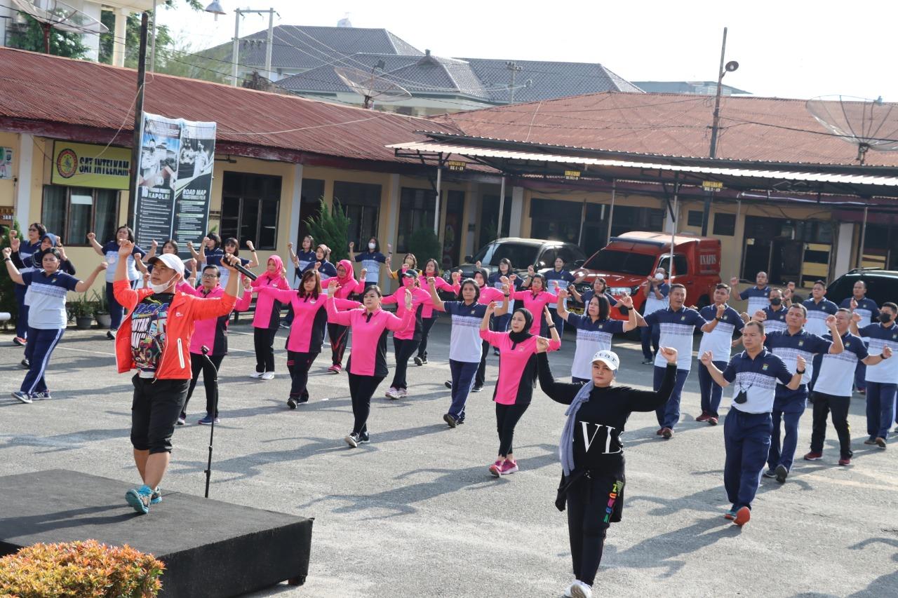 Kapolres Pematangsiantar AKBP Fernando menyampaikan kegiatan olahraga bersama ini dilaksanakan guna menjaga fisik dan stamina personel dan menyegarkan