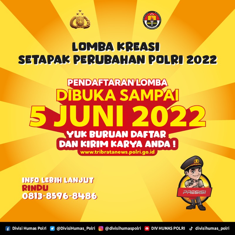 Lomba tersebut nantinya berupa pembuatan karya dalam bentuk Vlog, TikTok, Film Pendek, Konten Infografis, Fotografi, Blog dan Surat untuk Kapolri.