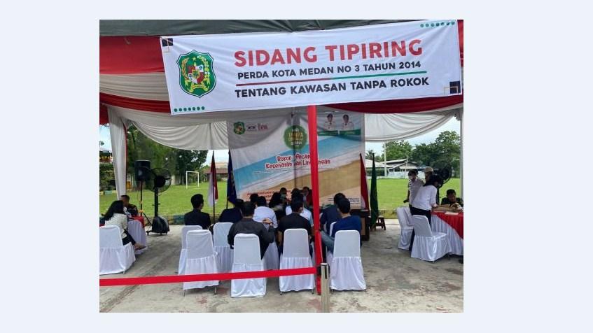 Kedapatan melanggar Perturan Daerah (Perda) Kota Medan Nomor 3 Tahun 2014 tentang Kawasan Tanpa Rokok (KTR) 8 warga disidang di Lapangan Sejati.