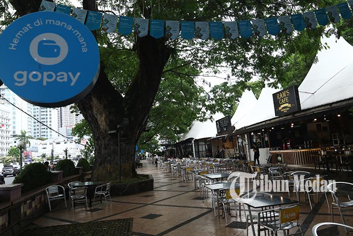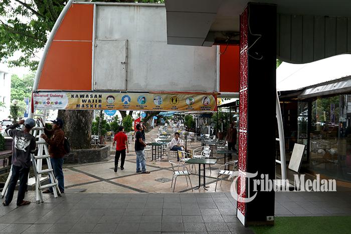 TRIBUN-MEDAN.com, MEDAN - Suasana aktivitas pekerja mengemasi barang untuk menutup tenant di Merdeka Walk, Medan, Kamis (16/6/2022). Pemko Medan berencana merevitalisasi Lapangan Merdeka untuk pengalihan fungsi utama menjadi alun-alun kota, sehingga para pemilik tenant akan direlokasi ke Taman Lili Suheri.