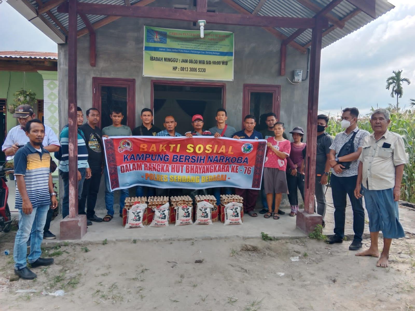 Jajaran Sat Res Narkoba Polres Serdangbedagai (Sergai) melaksanakan Bakti Sosial di Kampung Bersih Narkoba dalam rangka menyambut HUT Ke-76Bhayangkara