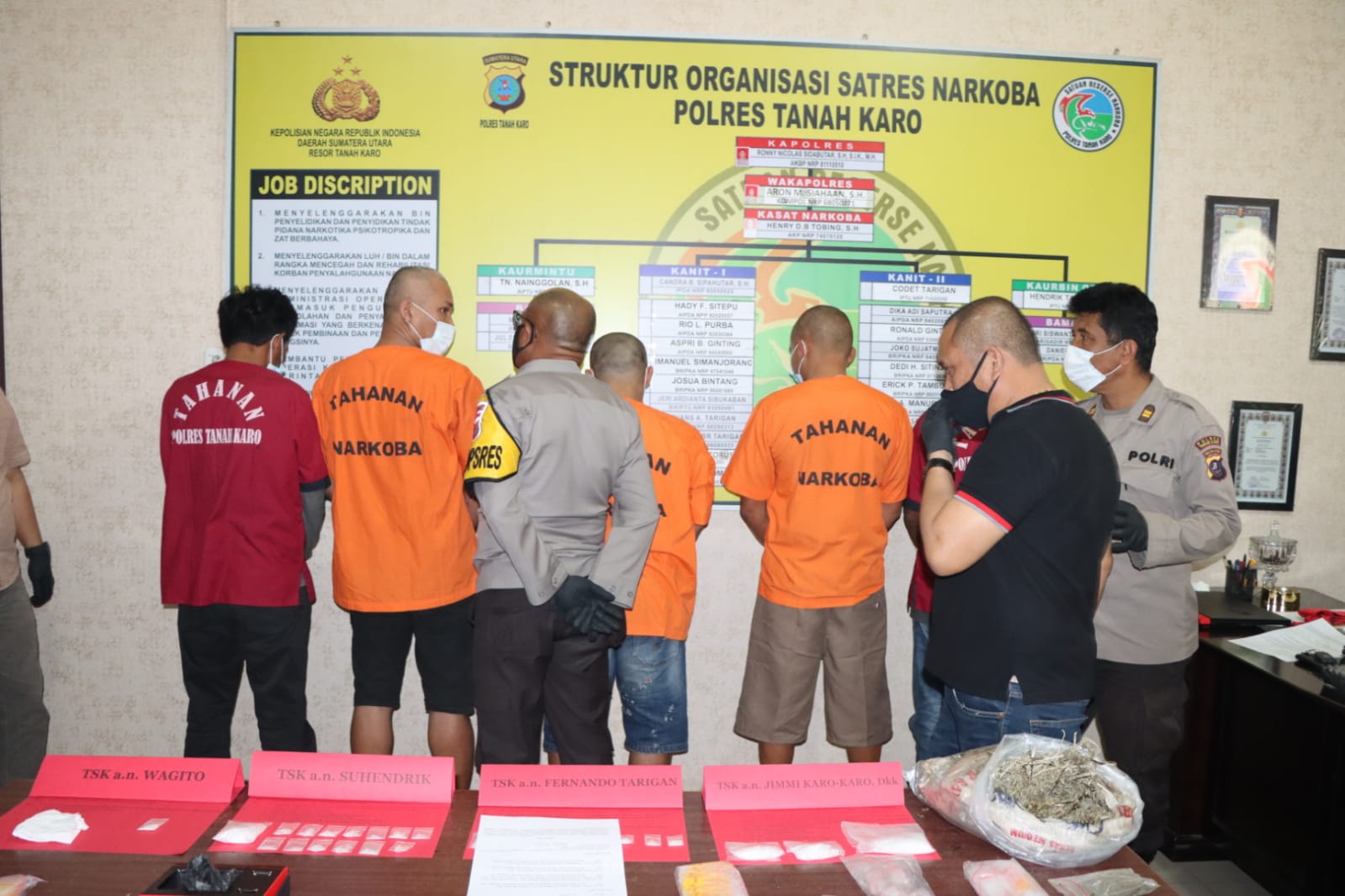 "Iya, Polres Tanah Karo mengamankan lima orang pelaku dan ratusan gram sabu serta ganja," ucap Hadi (18/6/2022).