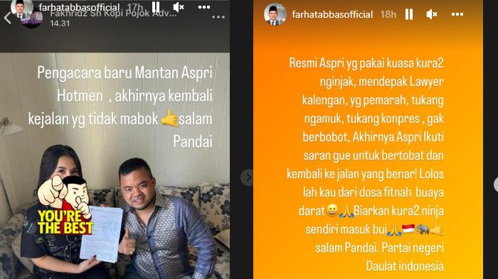 Di antaranya dikutip dari akun instagram Advokat Farhat Abbas dan Hotman Paris.